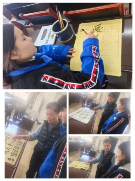 课堂上,周游老师细致指导学生描摹笔法,深入解析每种书体的文化内涵。新疆学生与本地学生围坐一堂、共同蘸墨挥毫,在笔墨交融中真切领略中华文化的博大精深。进一步拉近了心与心的距离。一幅幅作品陆续成型,有的书写“爱我中华”,有的临摹经典诗词,字里行间饱含着对文化的热爱与对团结的向往。