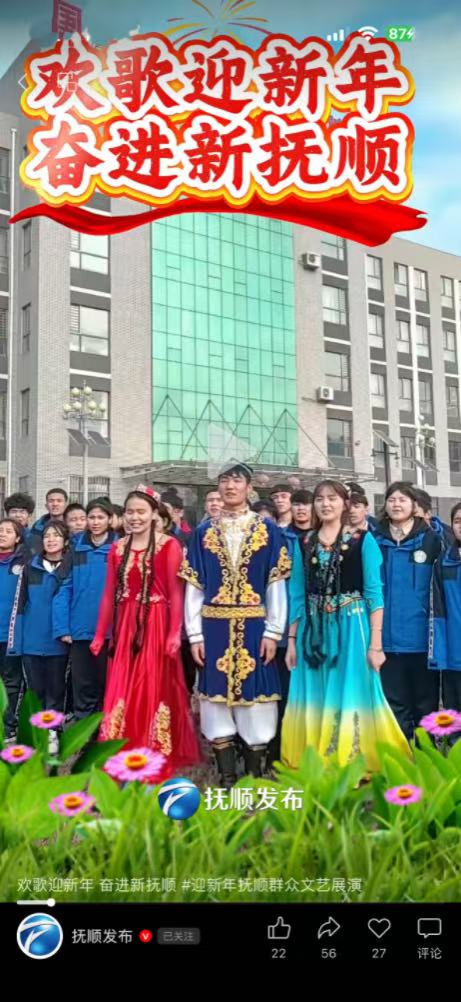 抚顺市电视台主办的“欢歌迎新年・奋进新抚顺”迎新年群众文艺展演,于2026年1月1日通过抚顺发布App播出,以文艺盛宴为雷锋之城启新岁。抚顺市农业特产学校精选学子献演的《我和我的祖国》大合唱与新疆舞蹈《黑走马》惊艳亮相,既抒怀学子爱国赤诚,亦彰显抚顺以雷锋精神促民族交融的底蕴,以青春风采献礼新年,为抚顺全面振兴新突破凝聚文化与团结力量。