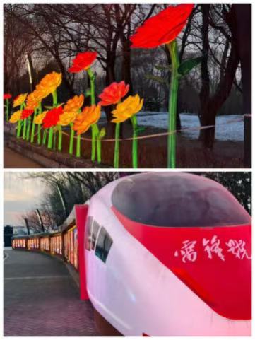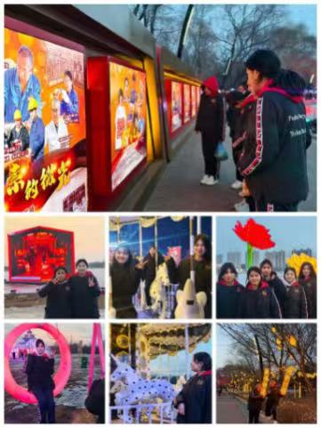 活动现场,冰封的湖面与绚丽的灯光交相辉映,12米高裸眼3D光影装置、特色冰雕景观、新春主题灯光秀依次呈现,全面展现了抚顺冬季文旅的独特魅力。同学们边走边看,认真聆听讲解,近距离感受城市文化与新春氛围,纷纷用手机记录下精彩瞬间,现场气氛轻松而热烈。